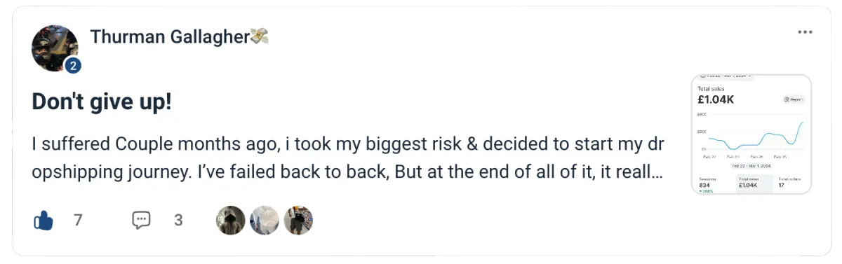 Act now and join a network of thriving dropshippers. Sign up for our exclusive offer: access to a private FB group for networking!